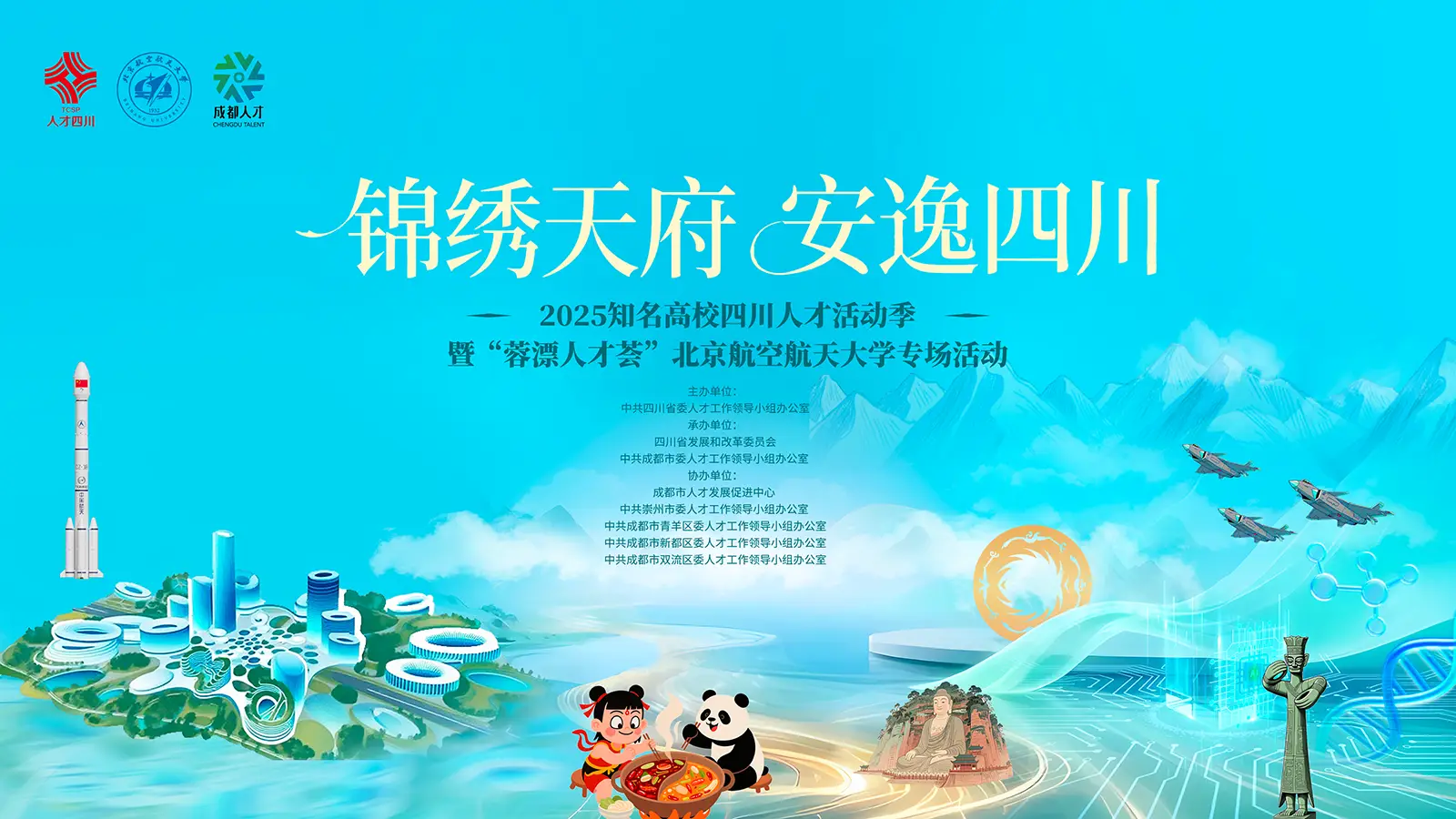 聚焦发展所需引育壮大一流人才队伍,重点针对高层次创新创业团队、青年科技人才以及高校毕业生等关键群体,秉承人力资源协同发展的理念,通过人才的协同效应推动经济社会的协同发展。积极组织并实施成都市“蓉漂人才荟”招才引智活动,跨区域、高质量地开展组团合作,广泛宣传成都市的城市形象、产业优势和人才发展环境,精确引进一批符合产业发展需求的紧缺人才,为新时代四川现代化建设及全面建设体现新发展理念的公园城市示范区提供坚强的人才智力保障。成都崇州市携青羊区、新都区以组团方式赴北京市,举办2025“锦绣天府 安逸四川”暨“蓉漂人才荟”北京航空航天大学专场活动。