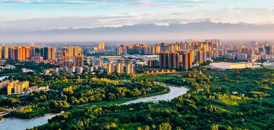 崇州,古称“蜀州”,位于成都市西部,幅员面积1089平方公里,是距离成都市中心最近的县市新城,素有“蜀中之蜀”“蜀门重镇”美誉。全域“十河贯境”“五水润城”,浓缩了雪山、湿地、湖泊等多种地貌,孕育出森林、温泉、古镇等多样风情,是国家全域旅游示范区、国家级生态城市。30万亩良田、5万公顷森林、近万个林盘构建出天府粮仓核心示范区独特魅力,获评首批国家乡村振兴示范县。