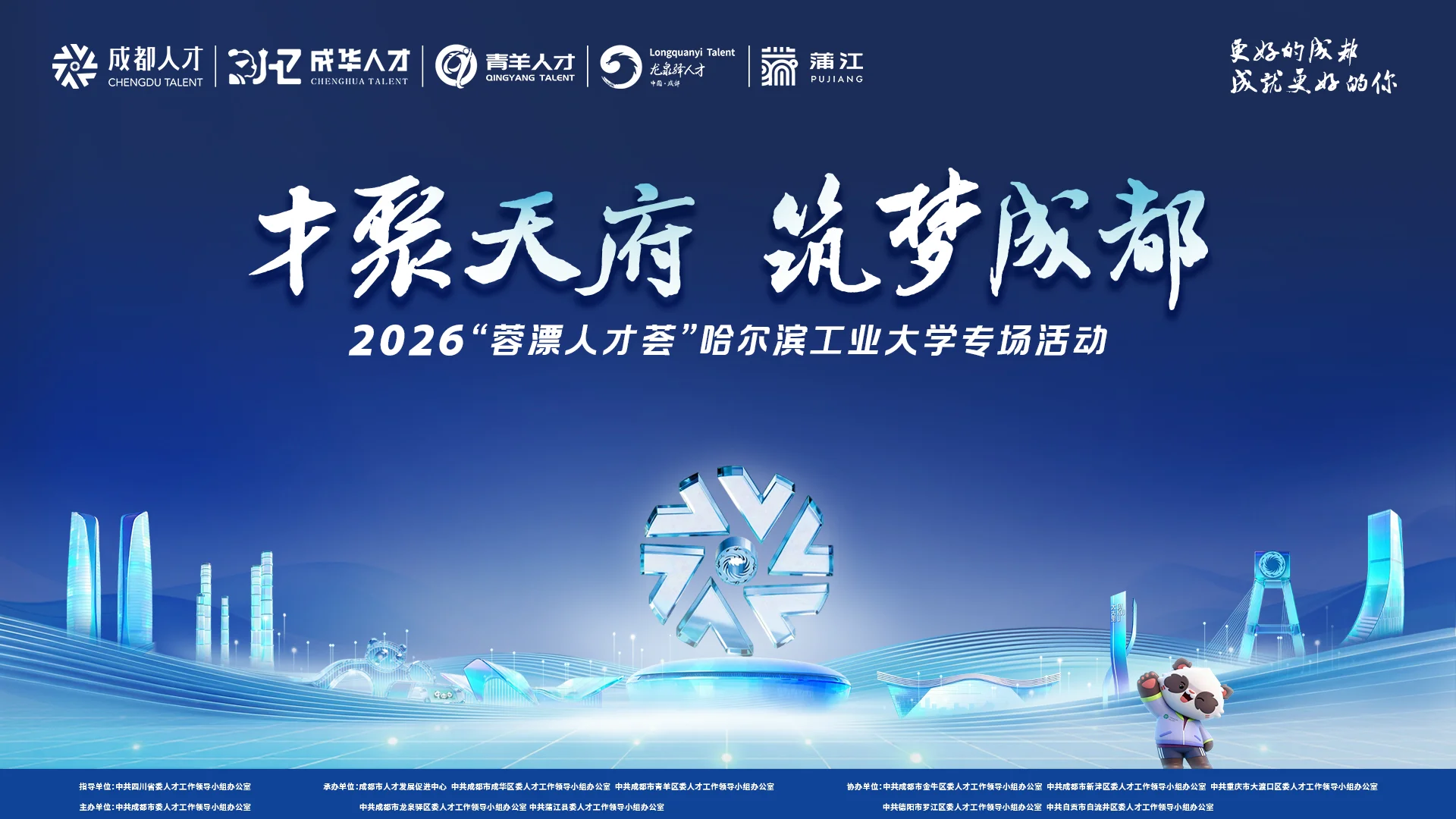 聚焦高层次创新创业团队,青年科技人才和高校毕业生等重点群体,紧扣成都市产业功能定位和产业生态圈发展需求,坚持人力资源协同理念,贯彻新时代新征程四川现代化建设理念,成都市成华区,成都市青羊区,成都市龙泉驿区,蒲江县,成都市金牛区,成都市新津区,德阳市罗江区,自贡市自流井区跨区域组团高质量前往哈尔滨市开展2026"蓉漂人才荟"哈尔滨工业大学专场活动。