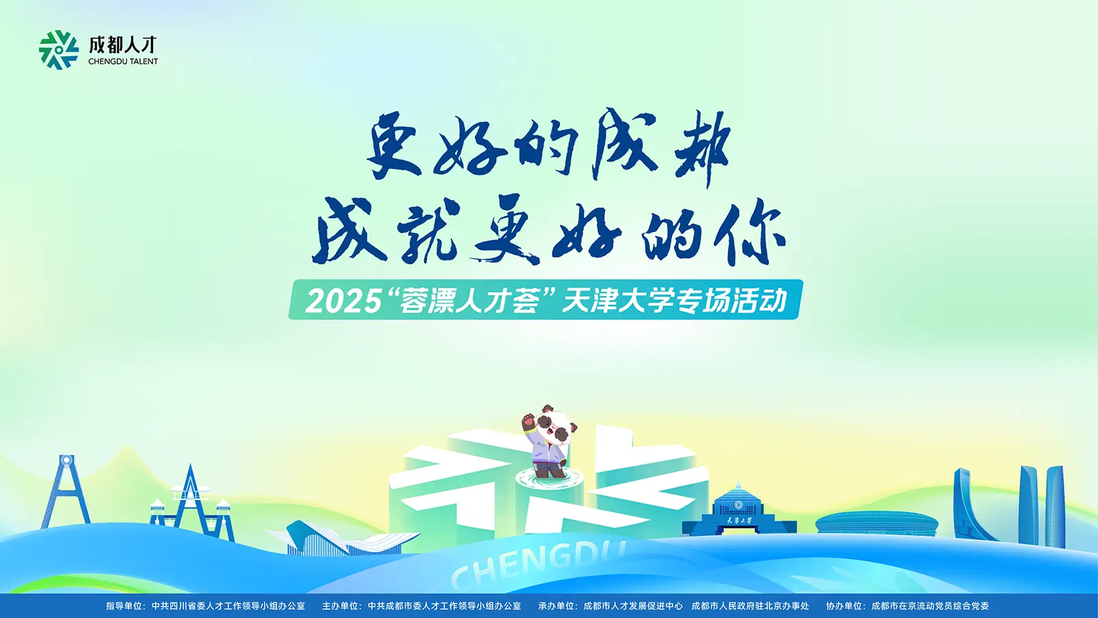 为深入学习贯彻习近平总书记关于做好新时代人才工作的重要思想,全面落实党中央、省委和市委关于人才工作的决策部署,坚定落实人才强市战略,着力推动教育、科技、人才一体化发展,奋力开创成都人才工作高质量发展新局面。由中共四川省委人才工作领导小组办公室指导,中共成都市委人才工作领导小组办公室主办,成都市人才发展促进中心、成都市人民政府驻北京办事处承办,成都市在京流动党员综合党委协办的成都市“蓉漂人才荟”天津大学专场活动将于10月24日在天津举行。